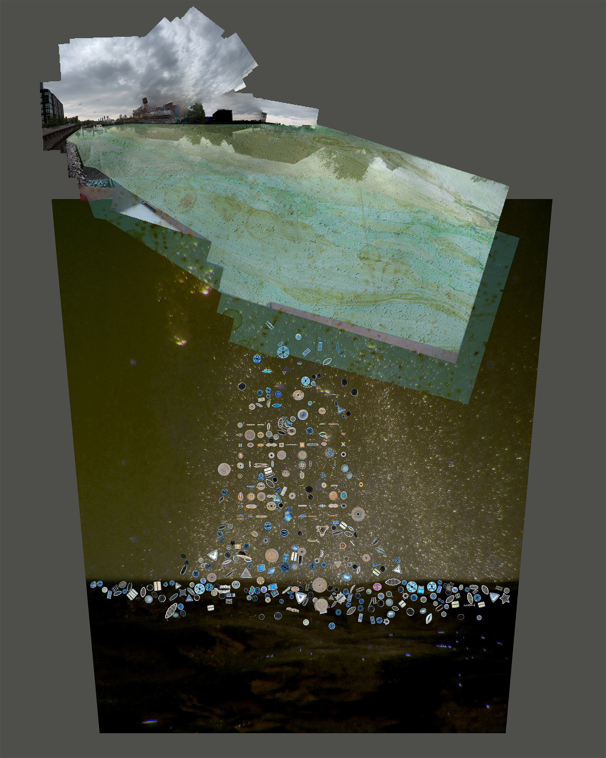Taking the suggestion of keeping Gowanus “ugly, polluted and affordable” as a starting point, I imagined the Gowanus Canal as a test site for feeding iron to phytoplankton colonies to make them bloom. Phytoplankton has the ability to capture carbon dioxide and fix it in tiny shells called “diatoms”, which eventually sink to the bottom of the water and stay there. Iron fertilization of phytoplankton is a potential strategy for capturing carbon dioxide from the atmosphere to reduce the effects of global warming. This would be done over huge expanses of ocean – and the effect on the ocean ecosystem that this would have is not entirely known at this point. The Gowanus, which is already a very compromised body of water, could be a good place to do some testing of this strategy.